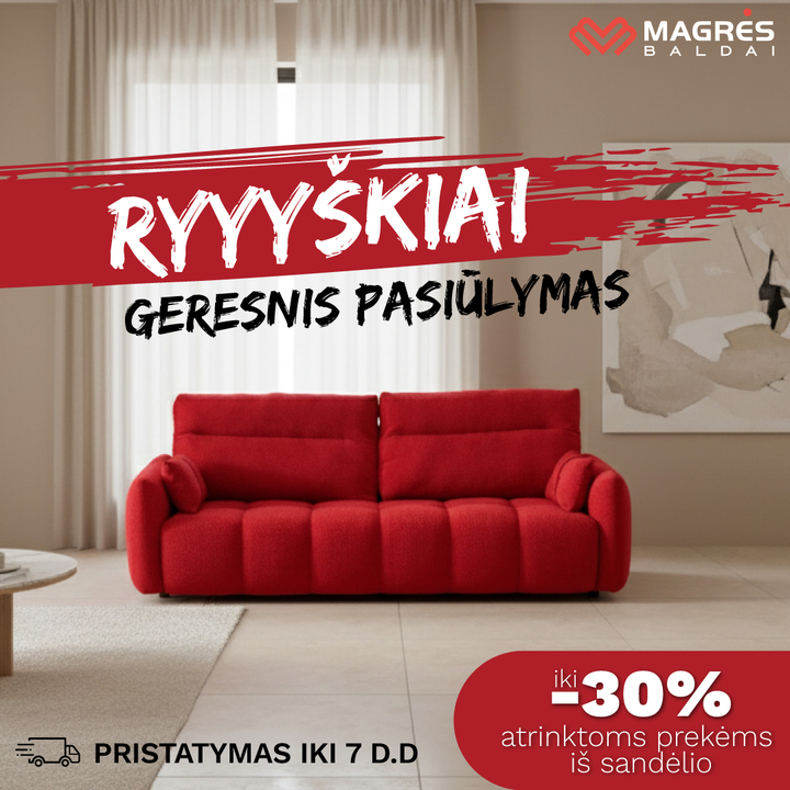 30% NUOLAIDA ATRINKTOMS MINKŠTŲ BALDŲ KOLEKCIJOMS IŠ SANDĖLIO