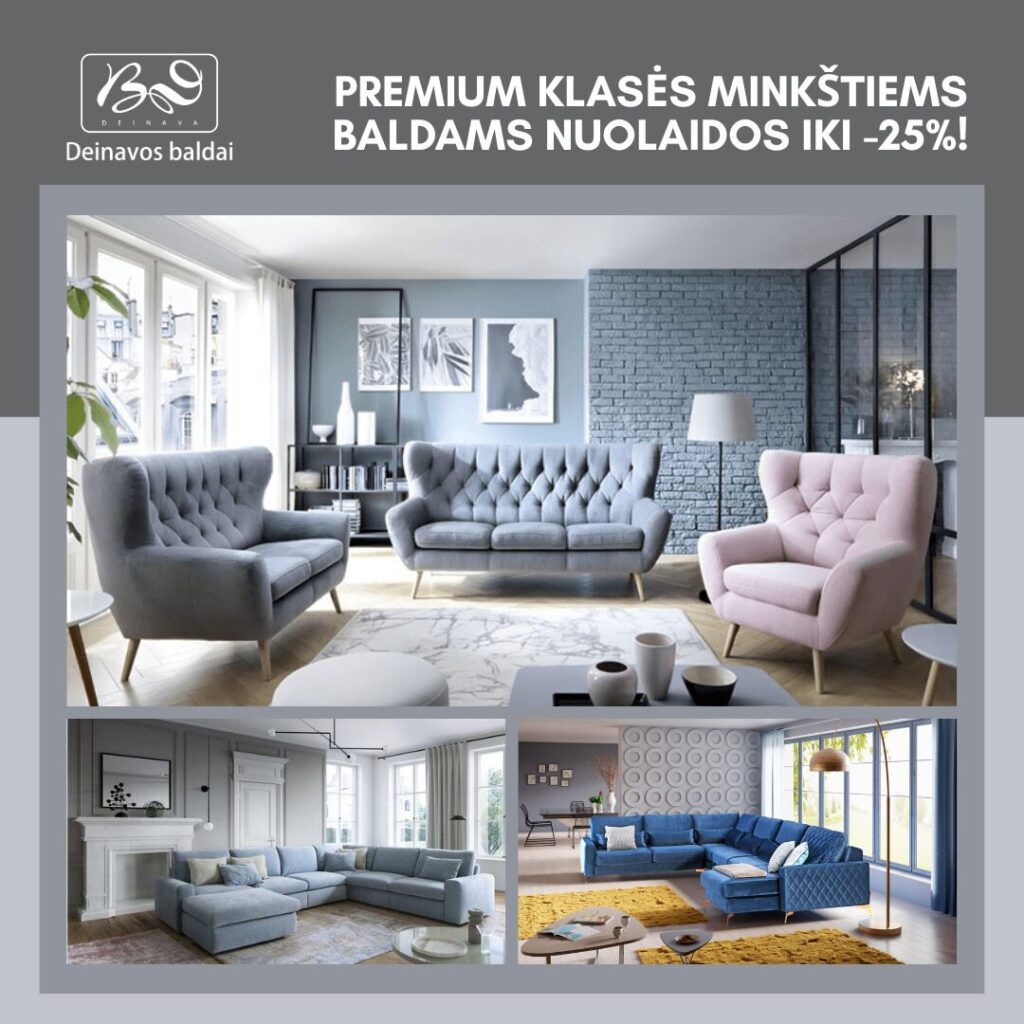 PREMIUM klasės minkštiems baldams nuolaidos iki -25%! Rinkitės iš didelės baldų kolekcijų įvairovės. Apsilankykite mūsų svetainėje adresu www.deinavosbaldai.lt