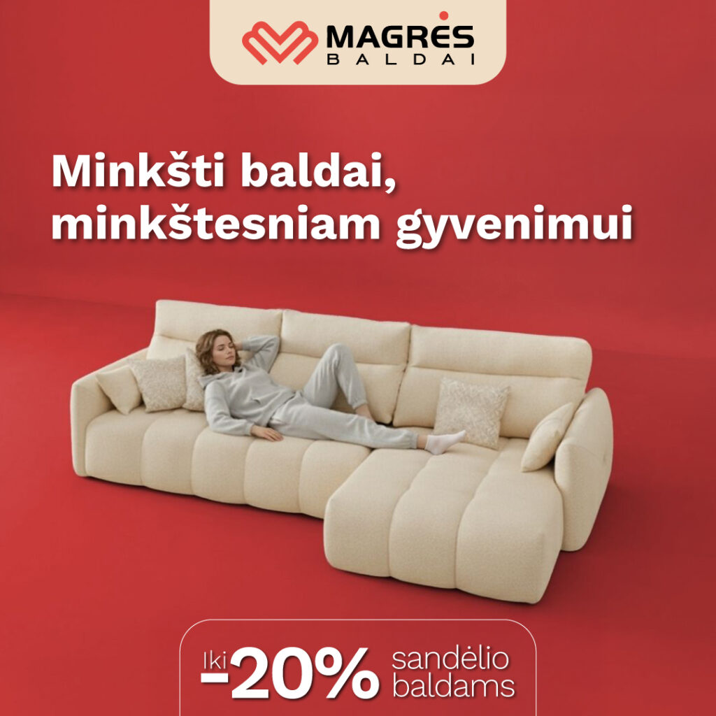 Perkant iš sandėlio atrinktoms prekėms taikoma 20 % nuolaida. Daugiau informacijos ir prekes su nuolaida rasite ČIA: https://www.magresbaldai.lt/baldai/visi-baldai-sandelyje/